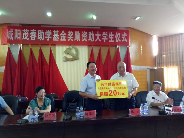 金秋八月,惠风送暖。8月26日上午,一年一度的“茂春助学基金”2016年奖励资助大学生和城阳镇环镇公路拓宽改造工程基金捐助仪式在福安市城阳镇举行,捐款43万元,奖励、资助130名应届大学新生,捐款100万元用于城阳镇环镇公路拓宽改造工程。福安市政协副主席饶兰芳、市关工委主任林青、市扶贫开发协会会长陈平玉、城阳镇党委书记陈柏崇、兴华财富集团党委书记、董事长陈茂春、福安市教育局、团市委、市妇联、城阳镇党委政府等单位领导以及学生和家长代表参加仪式。助学仪式由城阳镇党委书记陈柏崇主持。