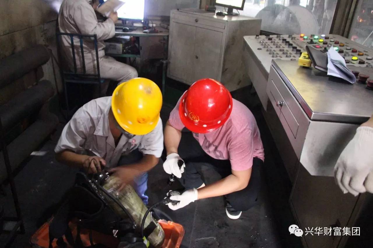 专家组检查职工实际操作空气呼吸机佩戴熟练程度