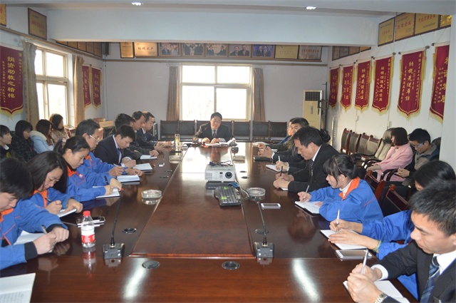 之后由财务总监范瑞华传达集团公司2014年讲话精神,落实2015年工作的指导思想:做强钢铁主业,落实一二三四五,即:一个中心:以营销为中心;两手抓,一手抓安防,一手抓成本;“三率”竞赛:设备停机率、产品合格率、员工工效率;四落实:落实管理制度,落实领导责任,落实岗位职责,落实考核指标;五提高:提高管理水平,提高产品质量,提高市场意识,提高经济效益,提高员工收入,全面完成生产经营目标。接着财务总监范瑞华宣读财务部任免人员和财务结构变更、宣读财务部6名先进个人名单,由财务部领导为他们颁奖。