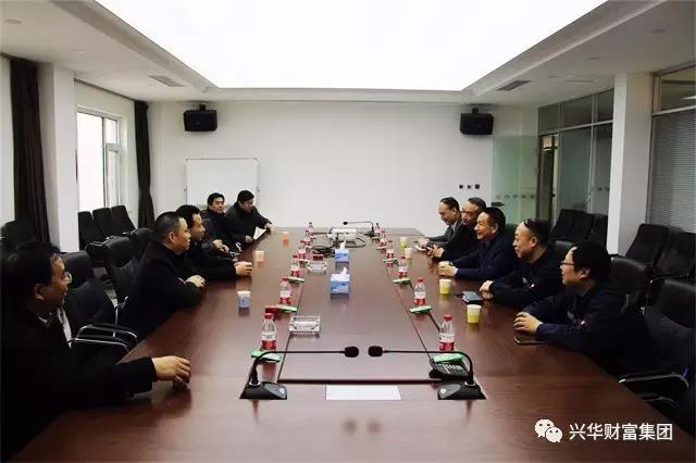 在会议室,陈董首先对矿山公司领导在节前到公司慰问表示感谢。随后就钢铁公司目前的发展情况和未来规划向史董事长一行作了详细汇报。他讲到:“兴华公司截止目前已经在武安发展了18年,18年来在冶金矿山公司的领导下,在全体兴华人的共同努力下取得了优异的成绩。2017年是兴华集团转型升级的关键时刻,我们将继续坚持“三经营”即经营人、经营产品、经营财富;“三发展”即发展兴华钢铁,发展中联钢信电商,发展永清农业地产;“三开放”即开放思想、开放思路、开放财路的发展理念。以钢铁为主业,发展中联钢信电商,联袂15家核心股东、300家会员股东、个人参股共同打造云端商贸城,帮助钢铁企业降低成本,提高效益”。